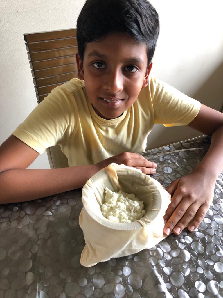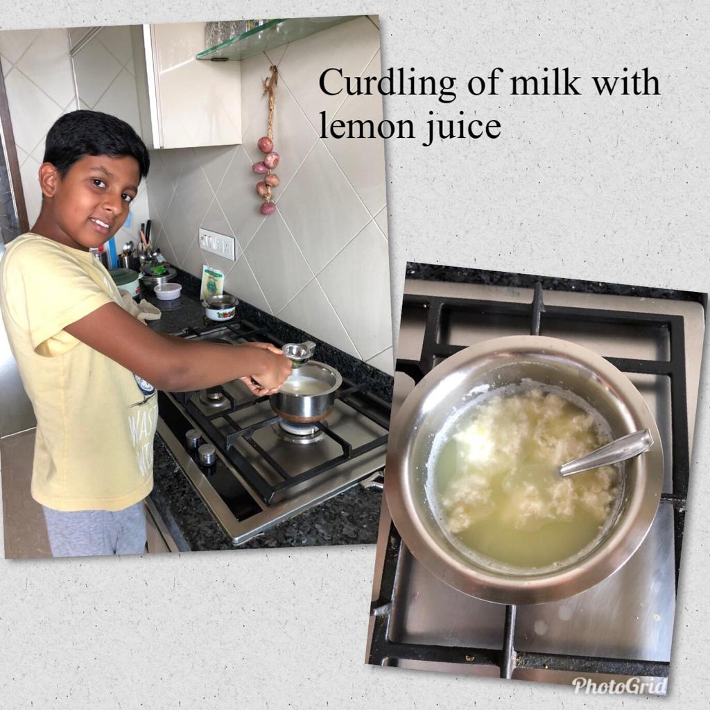 Take a a few spoonfuls of milk in a container. Squeeze some lemon juice into it. Observe the change.