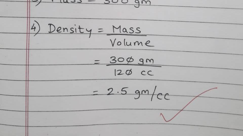 A student measured the volume correctly but made some mistake in the calculation and got final Mass = 4 kg.
