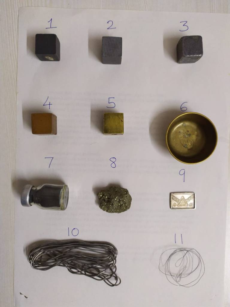 Observe the samples, record the names and note the properties.