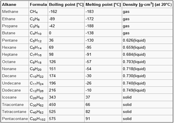 From pentane to octane the alkanes are reasonably volatile liquids. They are used as fuels in internal combustion engines. Alkanes from hexadecane upwards form the most important components of fuel oil and lubricating oil. As they are hydrophobic in nature, they are anti-corrosive agents.