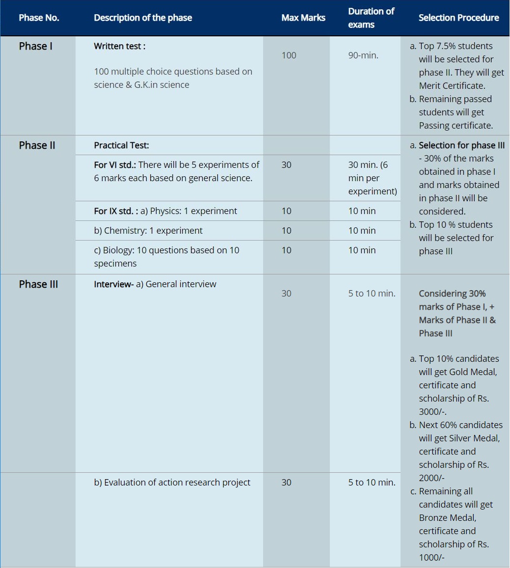 This prestigious exam, also known as the Young Scientist Competition or Bal-Vaidnyanik Spardha is a science competitive exam for 6th and 9th Std students. Around 40,000 students all over Maharashtra appear for the first level.